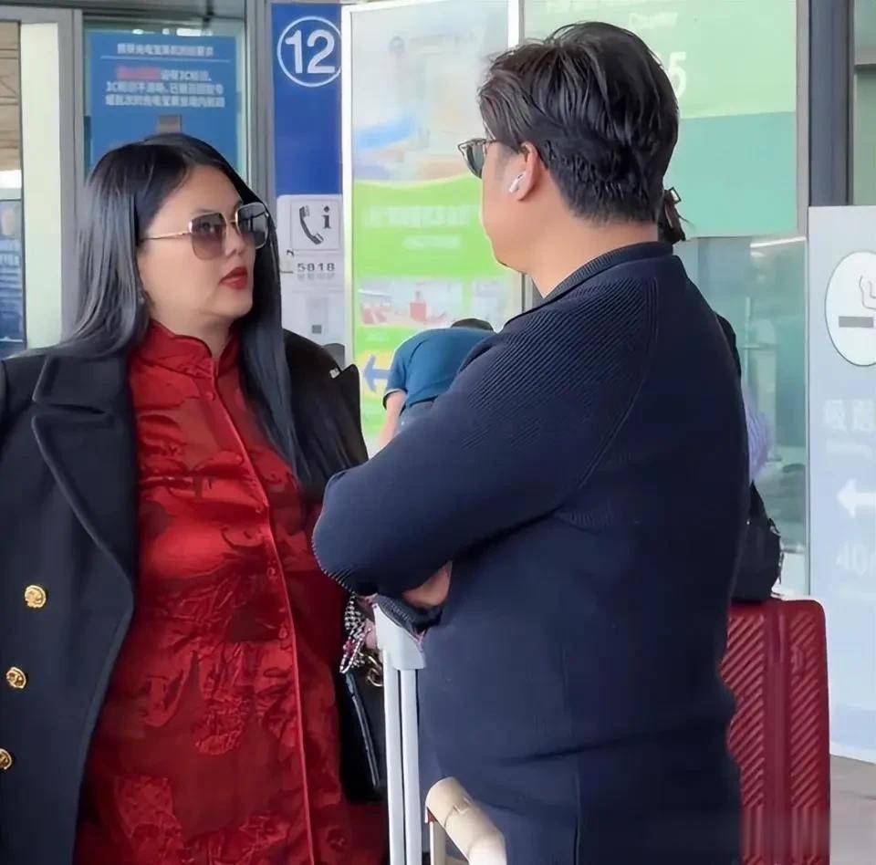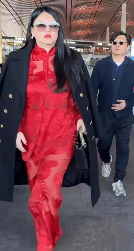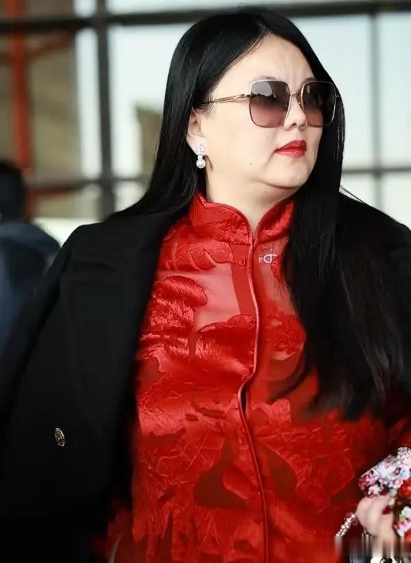 送女儿去留学的时候,机场照还是包身裙,珠圆玉润的贵妇范儿十足,如今她回来即使再怎么穿显瘦的衣服,黑色大衣挡不住她的赘肉。